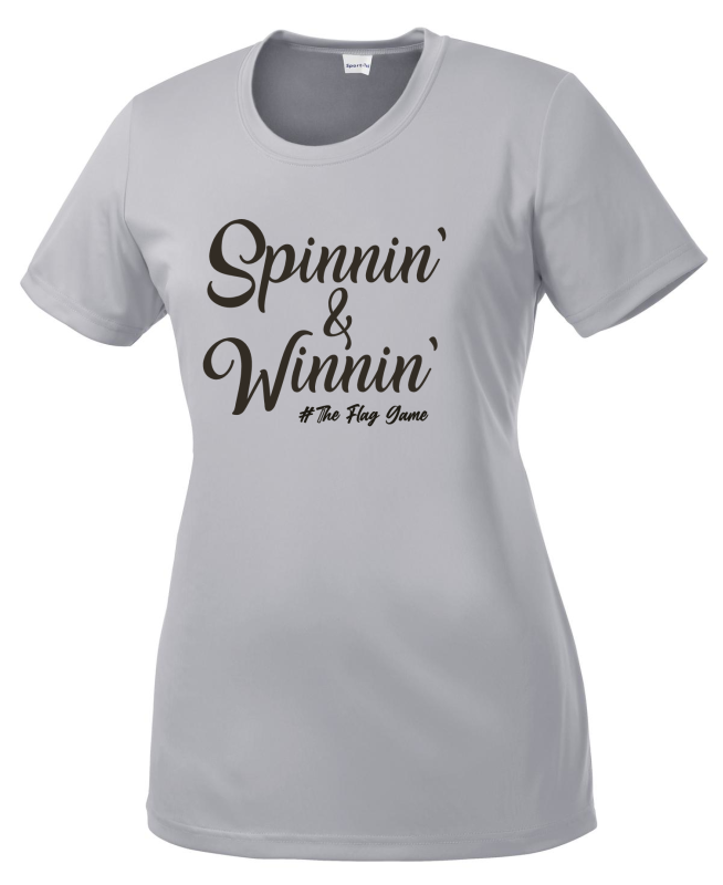 LADIES SPINNIN PERFORMANCE POLYESTER TEE.